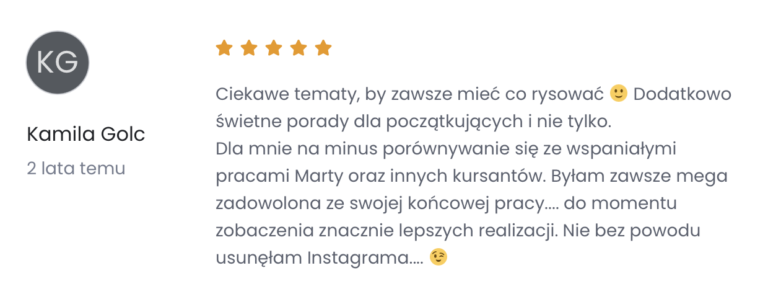 Tak, jeśli forma mailingu lub tekstu Ci odpowiada - dzięki temu szybko przystąpisz do działania. Przeczytasz list w autobusie lub w czasie przerwy w pracy/szkole i już wiesz, co będziesz w danym tygodniu rysować